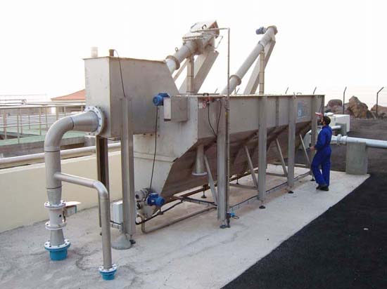Các hạt sạn và hạt nặng như cát và sỏi được lắng xuống, thường là trong buồng chứa cặn.